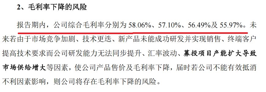 除了收入端的压力,长进光子的盈利质量也呈现下滑趋势。报告期内,公司主营业务毛利率从69.31%震荡下降至65.06%,且面临进一步下滑的风险。公司坦言,若市场竞争加剧导致价格下降,而公司无法通过降本或推出高附加值新品来对冲,利润总额将大幅缩水。