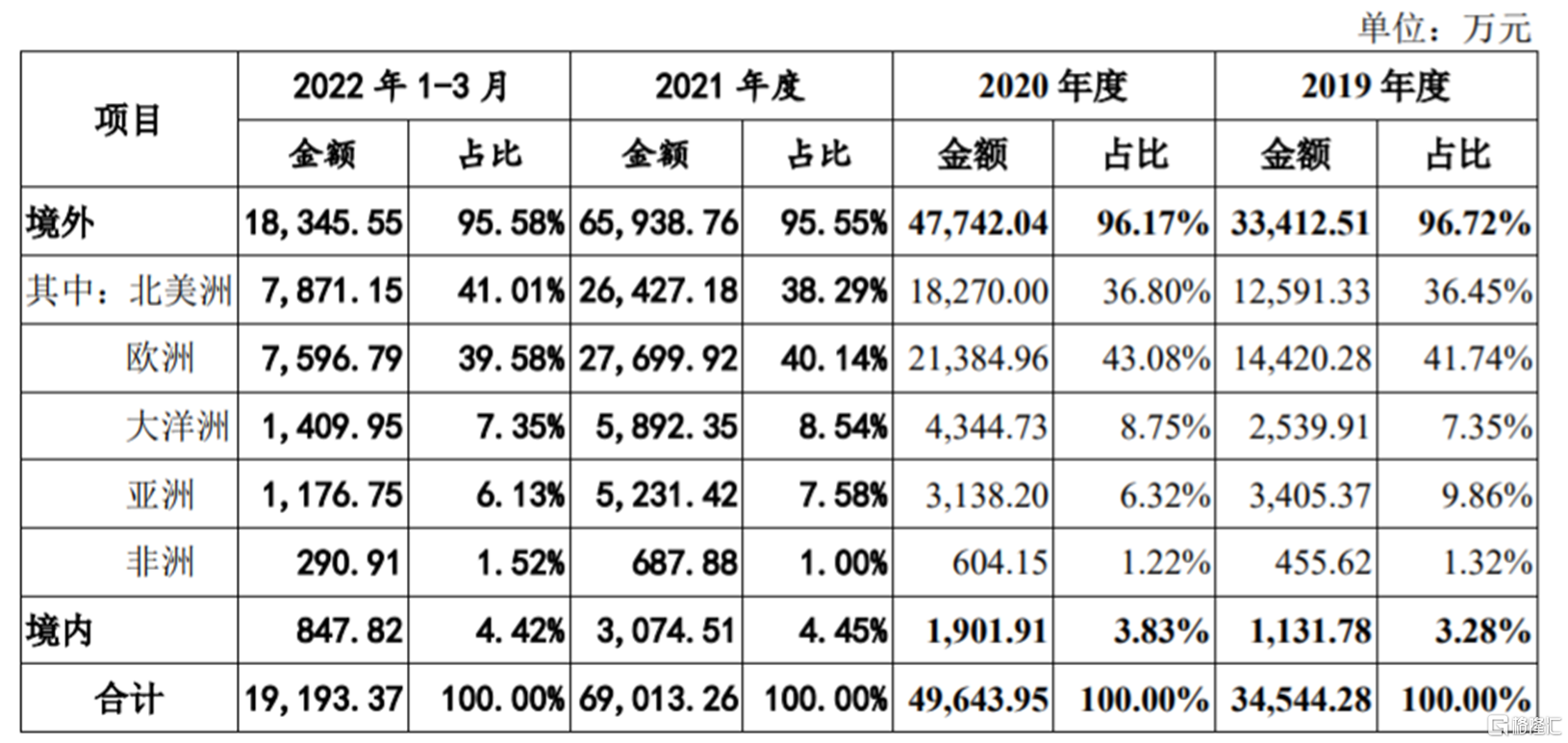 由于公司超九成收入依赖于境外地区,而美国市场的占比也将近三成,这就意味着公司面临着出口贸易政策发生不利变化的风险,以及汇率波动风险。