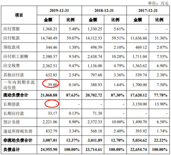 2017年-2019年,海晨物流负债总额分别为2.27亿元、2.37亿元、2.50亿元,其中最大头的为应付账款,分别为1.16亿元、1.41亿元、1.47亿元。