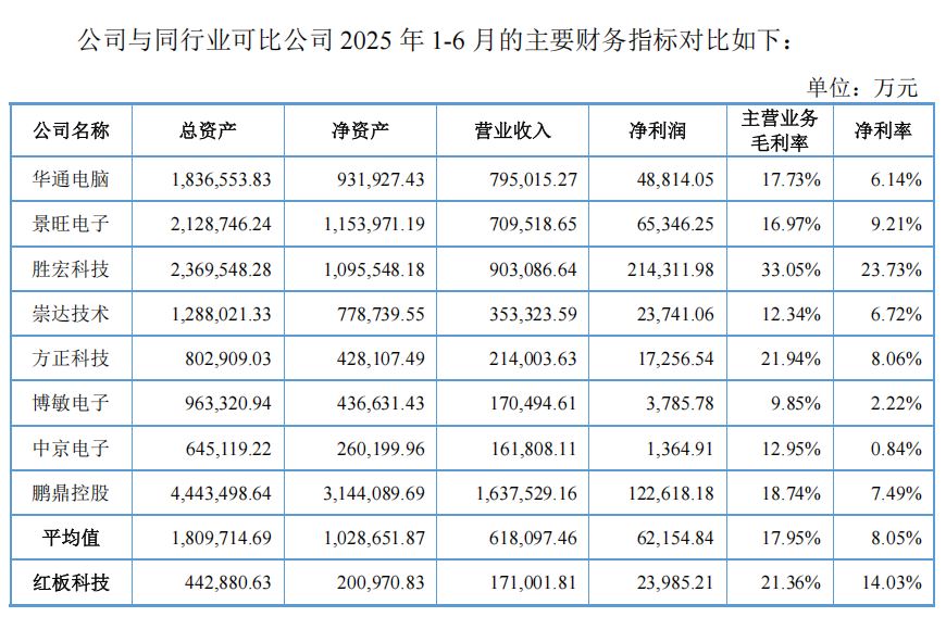 招股书显示,报告期内红板科技营业收入分别为22.05亿元、23.40亿元、27.02亿元和17.10亿元,净利润分别为1.41亿元、1.05亿元、2.14亿元和2.40亿元,业绩波动明显。公司坦言,未来业绩受宏观经济环境、产业政策、市场竞争及原材料价格波动等因素影响较大。例如,若下游消费电子、汽车电子等行业需求萎缩,或国际贸易局势恶化,可能导致产品销售价格下降、原材料成本上升,进而压缩利润空间。