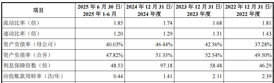 应收账款周转率也从2022年的2.39次/年,降至2025年上半年的0.44次/年,远低于行业平均水平。
