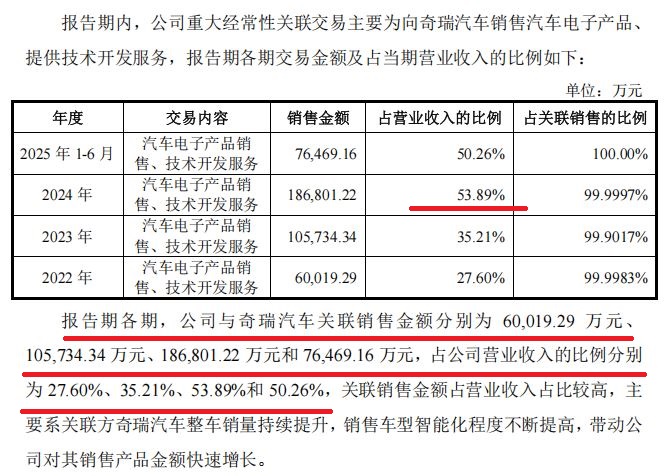 这种历史渊源直接影响着公司的营收结构,2024年,埃泰克对奇瑞汽车的销售收入占公司营业收入的53.89%。