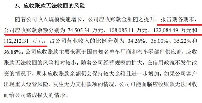 这些应收账款的来源高度集中,其中来自奇瑞汽车的应收账款占比从2022年的32.51%增至2024年的45.95%,几乎占据了应收账款的一半。
